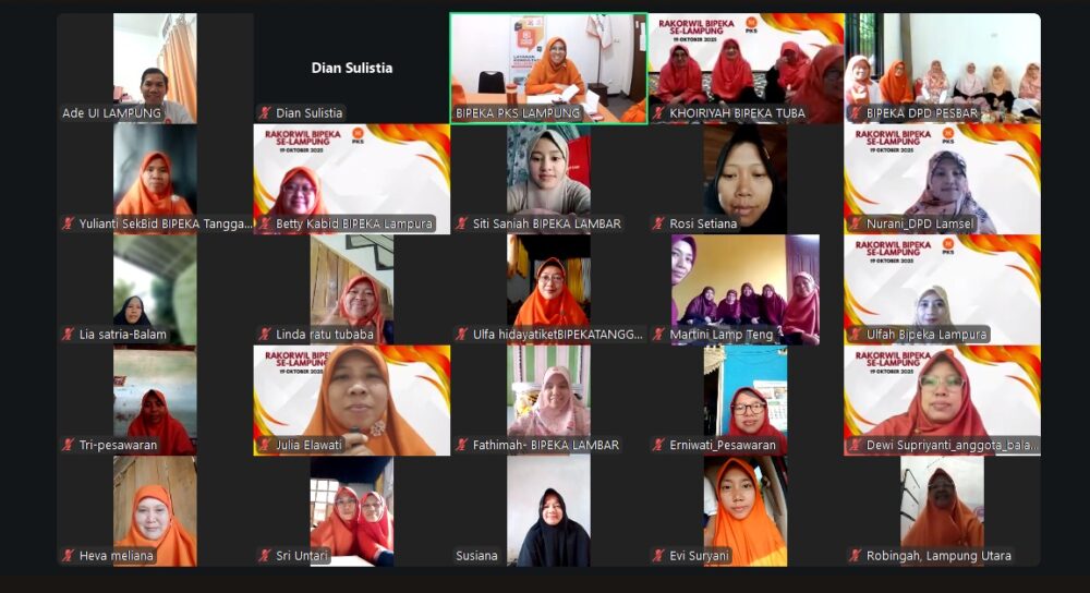 BANDAR LAMPUNG, (SA) – 19 Oktober 2025 — Bidang Perempuan dan Keluarga (BIPEKA) Partai Keadilan Sejahtera (PKS) Provinsi Lampung meneguhkan komitmennya untuk memperkuat ketahanan keluarga sebagai fondasi utama bangsa. Melalui Rapat Koordinasi Wilayah (Rakorwil) BIPEKA PKS Se-Lampung yang digelar secara daring pada Ahad (19/10), seluruh pengurus BIPEKA dari DPD PKS kabupaten/kota se-Lampung menyatukan langkah dalam mewujudkan family mainstreaming atau pengarusutamaan keluarga di seluruh program pelayanan dan pemberdayaan masyarakat.
