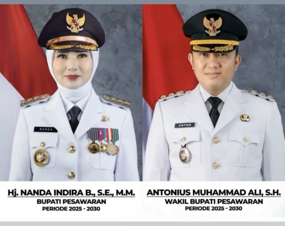PESAWARAN, (SA) – Kabupaten Pesawaran resmi memiliki pemimpin baru. Hj. Nanda Indira Bastian dan Antonius Muhammad Ali dilantik sebagai Bupati dan Wakil Bupati Pesawaran periode 2025–2030, Rabu (27/8/2025), di Gedung Balai Keratun, Komplek Kantor Gubernur Lampung. Prosesi pelantikan dipimpin langsung Gubernur Lampung, Rahmat Mirzani Djausal.