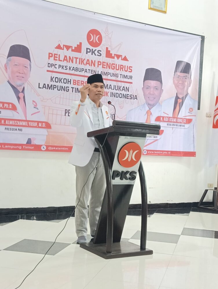 LAMPUNG TIMUR, (SA) – 8 November 2025 — Ketua DPW PKS Lampung, Ade Utami Ibnu, mendorong seluruh pengurus DPC di Lampung Timur agar membangun pola gerak yang solid, terukur, dan konsisten dalam pelayanan publik. Arahan itu disampaikan saat pelantikan 24 Dewan Pengurus Cabang PKS se-Lampung Timur di kantor DPD PKS Lampung Timur.