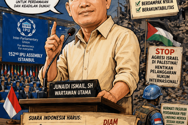 Oleh: Junaidi Ismail, SH | Wartawan Utama DI TENGAH eskalasi konflik global yang kian kompleks, kehadiran dan sikap resmi negara dalam forum internasional menjadi cermin dari arah politik luar negeri sekaligus komitmen moral suatu bangsa. Dalam konteks ini, langkah Badan Kerja Sama Antar-Parlemen (BKSAP) DPR RI yang menyuarakan sikap tegas terhadap tindakan Israel dalam Sidang…